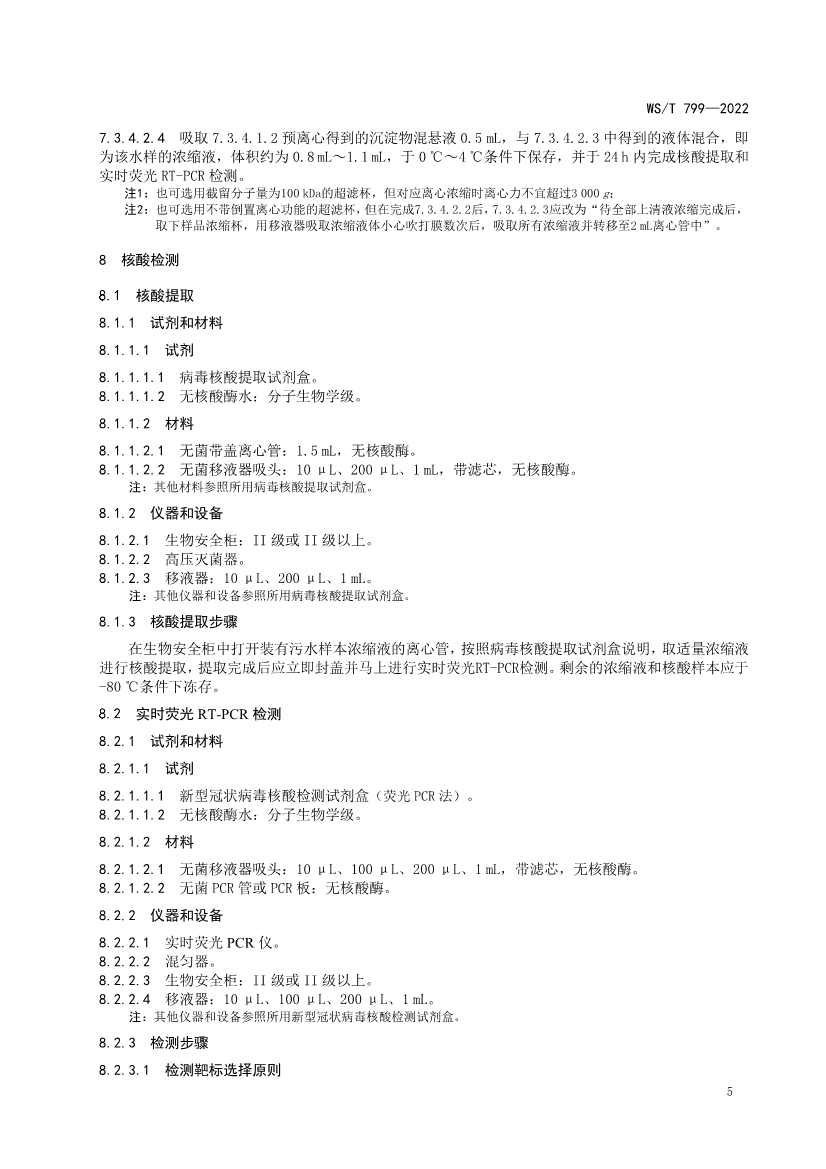 WST799—2022 污水中新型冠狀病毒富集濃縮和核酸檢測(cè)方法標(biāo)準(zhǔn)